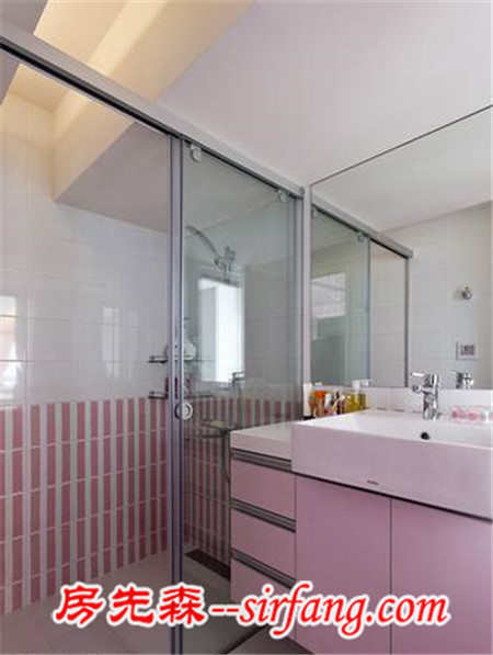 女孩房卫浴,承袭睡眠空间粉红色的梦幻漫延至卫浴空间。