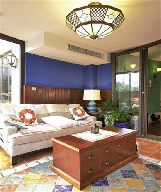 这是一套137平米美式混搭三居,给人眼前一亮的感觉,如果你喜欢颜色鲜艳的混搭家,那么这套装修风格或许可以参考下。
