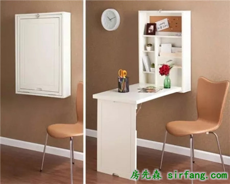 好聪明呀!利用书柜中的小空隙藏进桌椅。