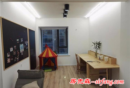 利用稍高一级的地台将阳台划分为亲子区,但依旧保持客厅的流动性;
