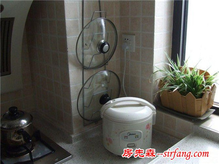 不知道您家厨房有没有这个设计元素呢,锅盖神马的真真的是放哪都不太方便啊,这样一个架子好拿好放还剩空间。