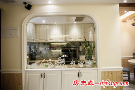 厨房是她喜欢的一个空间,面积不大,用了半开放式的设计,方便在做饭的同事看着孩子。