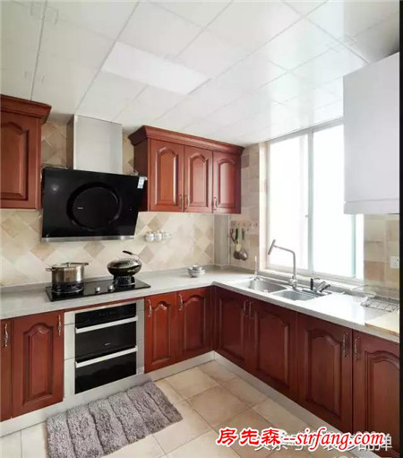 ▲厨房哑光瓷砖,深色模压橱柜,吊柜和橱柜之间瓷砖菱形铺贴《厨房地柜和吊柜之间都忽视了,赶紧看看10.9》