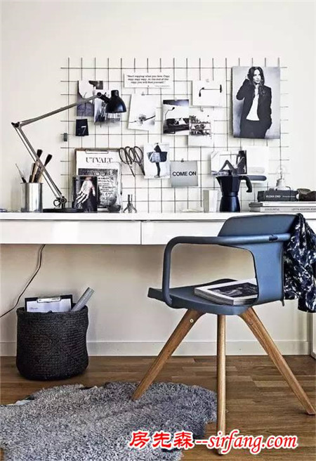 如果你喜欢DIY,也可以五金店购买你要的尺寸的网格板,把它漆成任何你想要的颜色,用无痕钉悬挂在墙上。