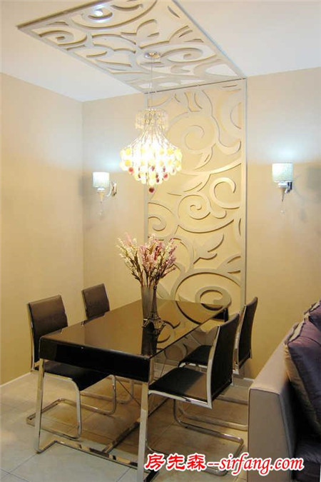 由于空间的问题,用灰色的镜子来装饰墙面,在视觉上放大了客厅的空间,整体的色调也比较柔和,色彩的装饰简洁又温馨。
