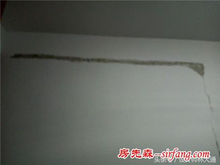 而墙体开裂师傅居然是用像木块一样的东西去封住,就是下面图片展示出来的这样。而不是先把开裂的地方除掉。然后用纱网把原始墙给搞好。所以造成了现在的豆腐渣装修。